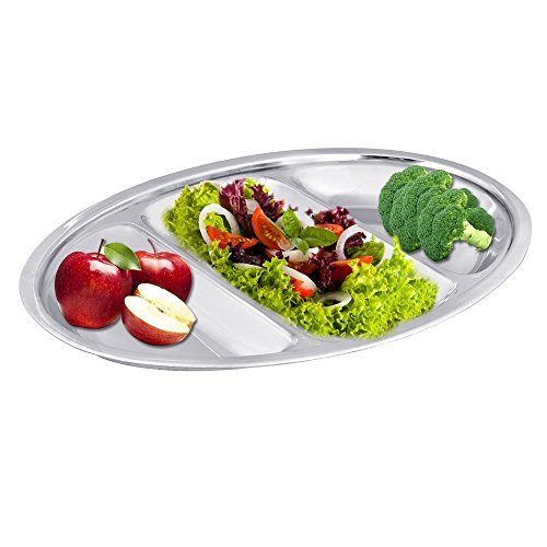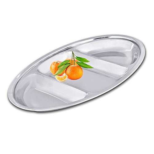 (Kosma)/Kitchen Dining/Tableware/DIRECT FROM USA/Kosma Stainless Steel Snacks Divided Platter | Oval Compartment Tray | Servng Tray - 49 cm