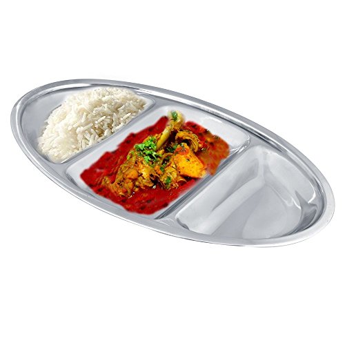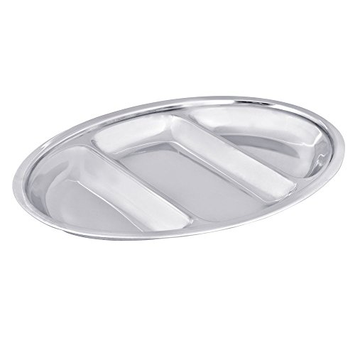 Product Description Stainless Steel. - Great head conduction to keep served vegetables/food warm. - Divided down the middle to separate different foods. - Reflective shiny finish. 0