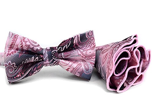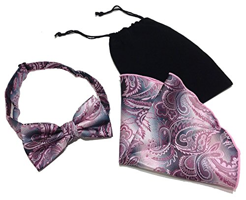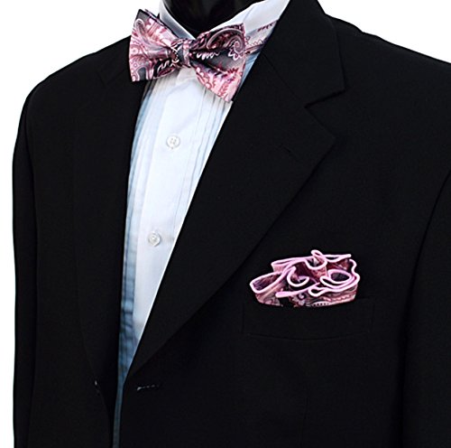 (Distinctive Designs)/Accessories/Ties/DIRECT FROM USA/Men's Black Pink Paisley Holiday Banded Formal Novelty Bow Tie Matching Pocket Hanky Set ...