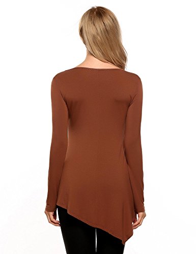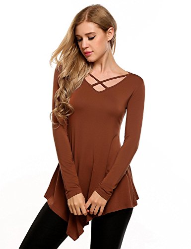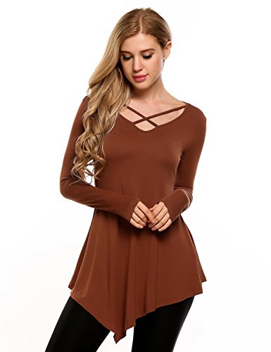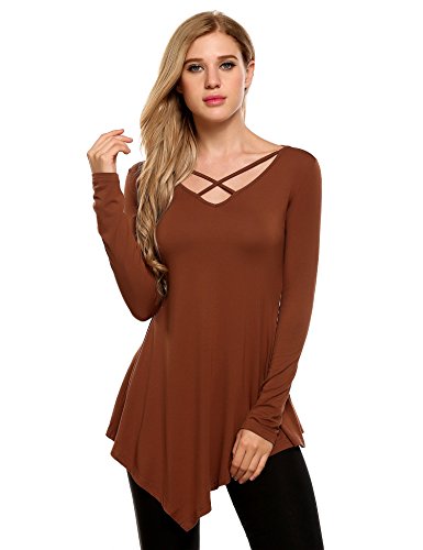 Mofavor Womens Long Sleeve Criss Cross Neck Casual Asymmetrical Hem Flowy Pleated Top