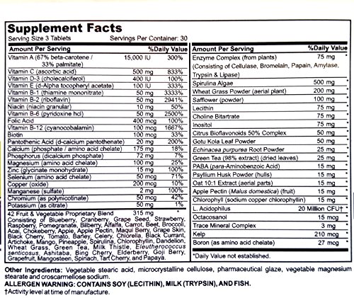 -. Feature : # 1 REAL FOOD MULTIVITAMIN from REAL FARMS and ORCHARDS; Our proprietary blend of whole fruits, whole vegetables, vitamins, minerals and plant enzymes provide complete daily nutrition in 3 tablets. Boost your IMMUNITY and WELLNESS to higher levels. That's why we call it Farm to Tablet. Feel better, experience more energy, and know your body is getting the nutrients it needs with our daily multivitamin. / ENDLESS BENEFITS from our GREEN SUPERFOOD; Spirulina and Wheat Grass, plus Antioxidants. Nature's Garden supports a healthy immune system, healthy circulatory system as well as providing support for the urinary tract and cardiovascular system. Rich in B12, without added iron, our proprietary formula has you covered. Greens, Reds and Yellows all included! You get a daily arsenal of stress fighting antioxidants. / COMPLETE NUTRITION for WOMEN. High potency, premium quality with a money back guarantee, we want you to feel great, and feel great about your purchase. Try our Whole Food Multivitamin today. / SAFELY manufactured in the USA at our GMP certified FDA approve Laboratory. Purity is guaranteed. We know you only want to put the finest ingredients into your body. / With our Premeium Whole Food Nutrients, you will boost your WELLNESS and IMMUNITY.