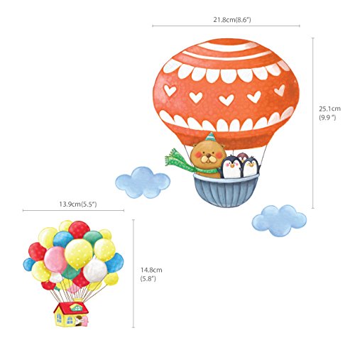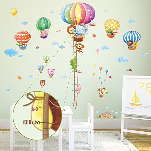 Decowall DM-1606P1406B Animal Hot Air Balloons Height Chart Kids Wall Decals Wall Stickers Peel and Stick Removable Wall Stickers for Kids Nursery Bedroom Living Room