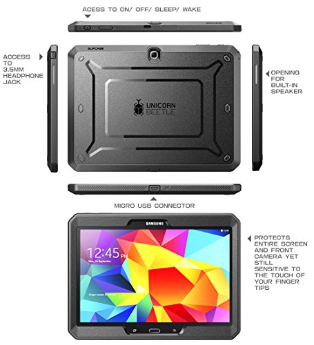 Samsung Galaxy Tab 4 10.1 Case, SUPCASE [Heavy Duty] Case for Galaxy Tab 4 10.1 Tablet [Unicorn Beetle PRO Series] Full-body Rugged Hybrid Protective Cover with Built-in Screen Protector (Black/Black), Dual Layer Design + Impact Resistant Bumper