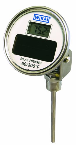 WIKA TI.82 Stainless Steel 304 Solar Digital Thermometer, -50/150 Degrees C, 2.5" Stem, 1/2" NPT Connection, Just-Right Adjustable Angle Mount