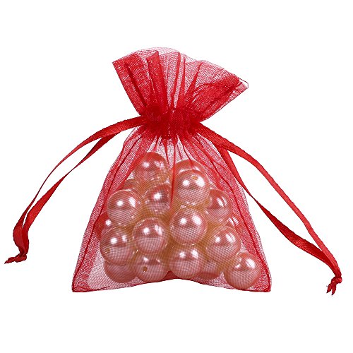 Ling's moment 50PCS RED 4 x 6 Inch Sheer Organza Drawstring Gift Bags for Wedding Party Favors
