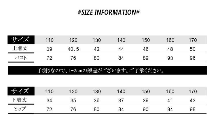 【110】 身長100-110cm 上着丈39cm バスト72cm 下着丈34cm