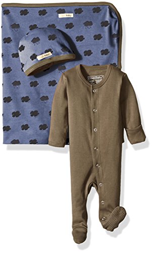 Organic cotton blanket, hat, and footed sleeper bundle/gift set