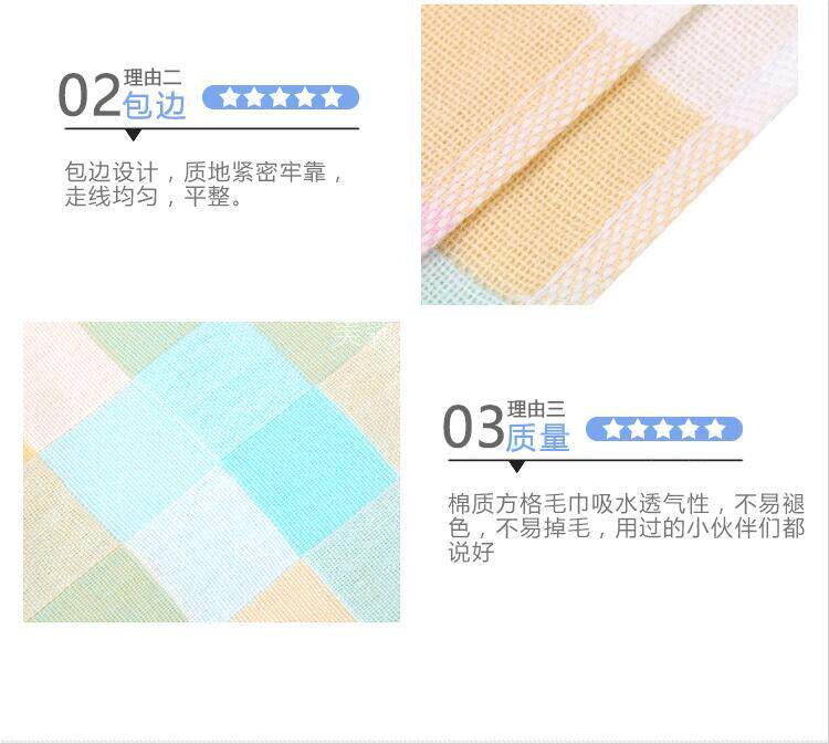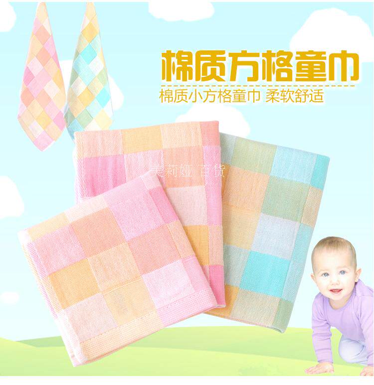 家用纯棉方格吸水小毛巾方巾面巾儿童婴儿成人洗脸洗澡速干擦手巾