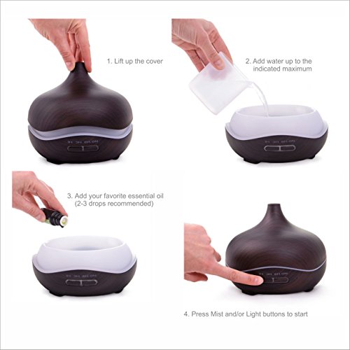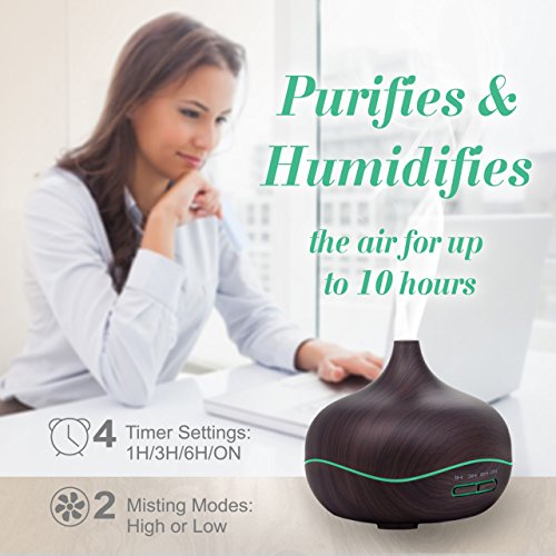 Lissetti Diffuser for Essential Oils Aromatherapy Diffuser Ultrasonic Aroma Diffuser Wood Grain Cool Mist Humidifier for Bedroom Kids Room Living Room Study Yoga Office