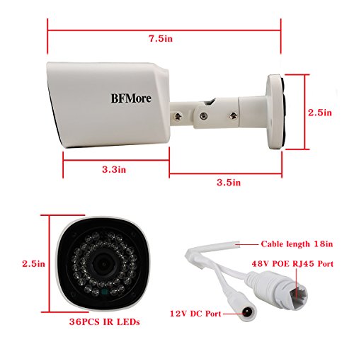 -. Title : IP POE Camera 1080P RTSP, Outdoor Home Security Camera BFMore, Onvif H.264 Network Night Vision Waterproof, Remote View by APP iPhone Android Windows PC, 12V 48V 3.6mm Lens