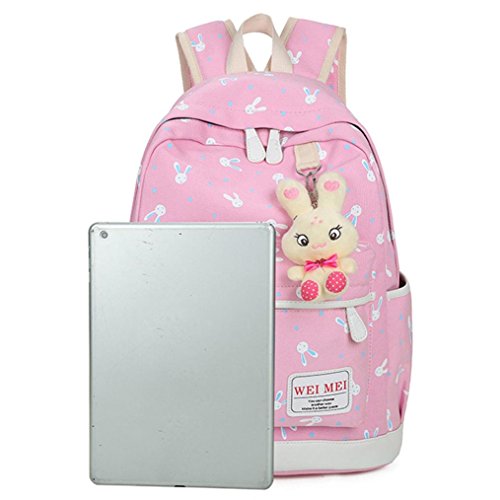 -. Title : Women Girl Bag 4 Sets,Travel School Backpack+Crossbody Shoulder Bag+Tote Purse Handbag+Pencil Case +Rabbit Pendant