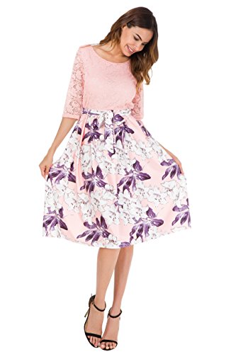 Women's Vintage 1950s 3/4 Sleeve Lace Floral Printed Cocktail Evening Dress (XXL, Blue-2)