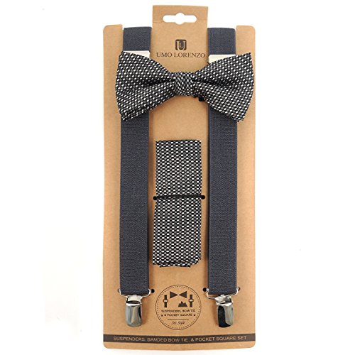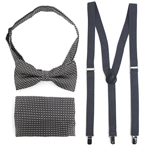 (TheDapperTie)/Accessories/Ties/DIRECT FROM USA/3pc Men's Charcoal Banded Suspenders, Geometric Bow Tie and Hanky Sets