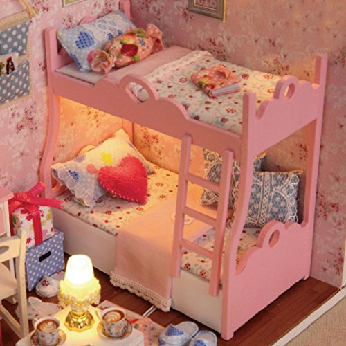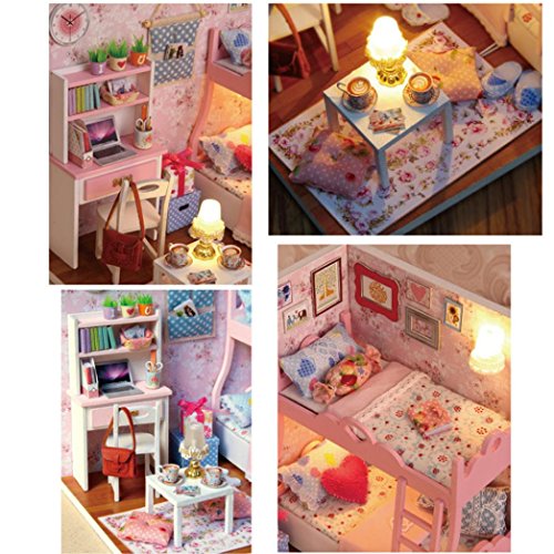 -. Title : Dollhouse 3-D Puzzle,Pink [DIY Kit Furniture Set with LED Light] Best Educational Gifts/Toys/Decorations for Boys and Girls