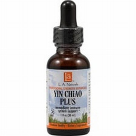 ReleaseDate : 2017-11-02 Studio : Inventory Management Services- HPC Publisher : Inventory Management Services- HPC Binding : Health and Beauty Product Description L.A. Naturals Yin Chiao Plus Immediate immune system support. A traditional Chinese formula for immediate immune system support. Best in the first 24-48 hours when coming down with something. Supplement Facts Serving Size: 30 Drops (1 ml) Servings Per Container: 30 Amount Per Serving 500 mg/ml Herb Weight Equivalence Proprietary Blend * Isatis Root ~, Ilex Root ~, Chrysanthemum Flower ~, Forsythia Fruit ~, Lonicera Flower ~, Lophatherum Herb ~, Pueraria Root ~, Schizonepeta Herb ~ Herb Strength Ratio 1:2 * Daily Value Not Established Other Ingredients: Grain Alcohol (40-50% by volume), Deionized Water Suggested Use: 10-30 drops in water or juice, 2-3 times daily, or as needed. WARNINGS: Do not take during pregnancy or while nursing. Keep out of the reach of children. Shake well before using. Legend: ="Certified Organic" > ="Ethically Wild Harvested" ~ = "Selectively Imported" 0