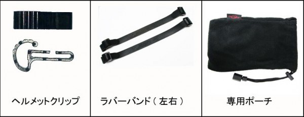 | 付属品 | テスト電池付き(単3電池3本) ヘルメットクリップ×4個 ラバーバンド(左右) 布バンド 専用ポーチ |