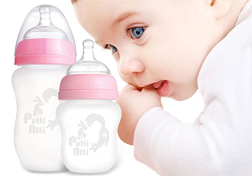 -. Title : PuttiAtti Silicone Baby Bottle, green and pink, 8 oz, twin set