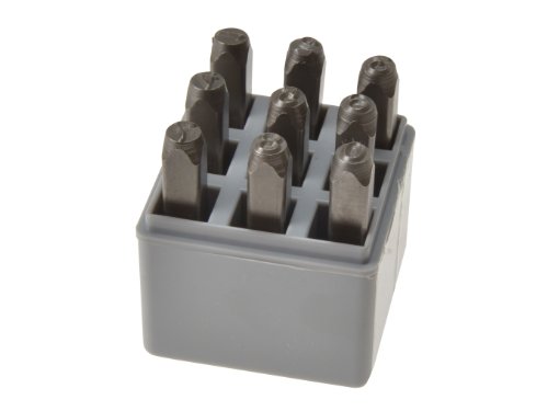 9 piece, 1/4 inch number stamp set, standard high quality, includes: 0-8, 6 to be used as 9, &, recommended for medium to light duty marking on wood, leather, aluminum, brass, sheet metal & cold rolled steel, for hand held hammer struck applications, textured shanks provide a firm easy grip, includes plastic storage case.Feature