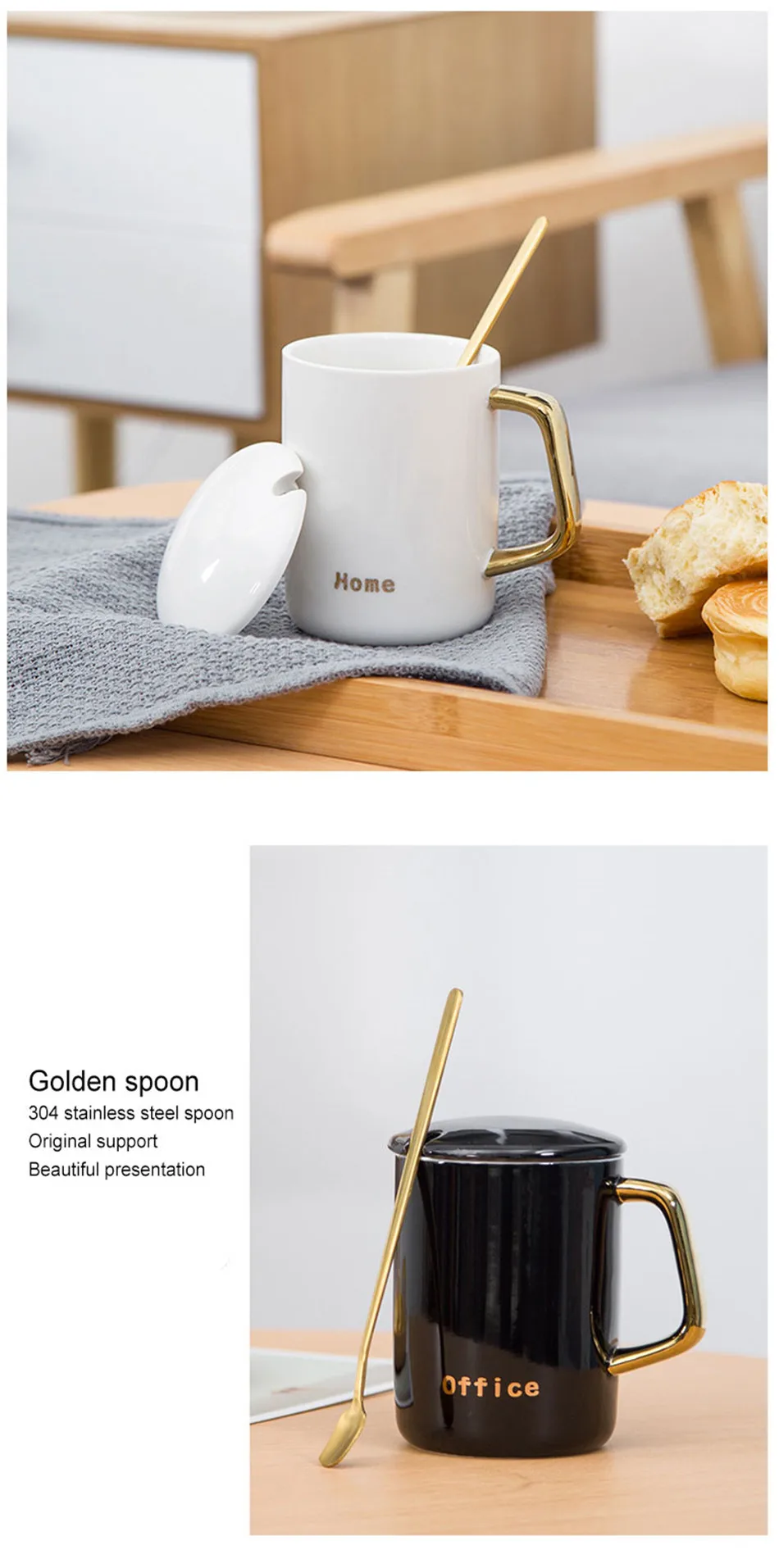 Feature 1 :Black White Lovers Plating Gold Cup