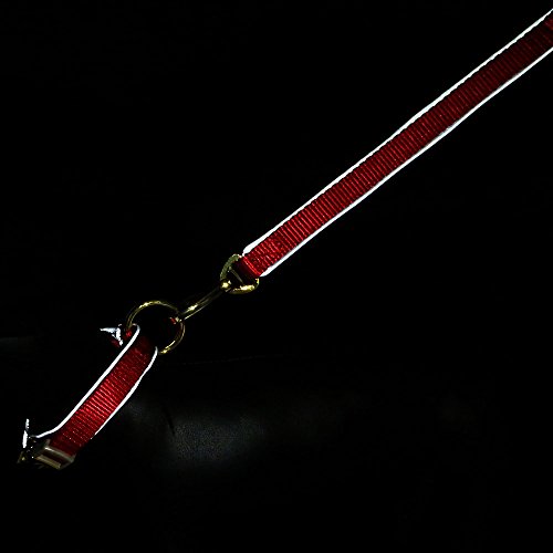 Size S: width 0.5", length 5ft, for weight up to 25 lbs, minimum tensile strength 175 lbs, typical breeds*: Pugs, Pekingese, Bichon, Dachshund M: width 0.8", length 5ft, for weight up to 90 lbs, minimum tensile strength 630 lbs, typical breeds*: Beagle, Brittany, Staffordshire Bull Terrier L: width 1", length 5ft, for weight up to 120 lbs, minimum tensile strength 840 lbs, typical breeds*: Labrador, Great Dane, German Shepherd *The suggested typical breeds are for reference only. Please refer to the actual measurement for best results.