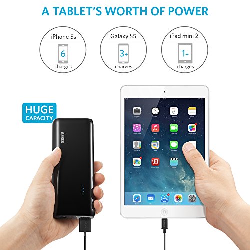 - Feature : The Anker® Advantage: Join the 6 million+ powered by Amazon's #1 charging brand. / Exclusive PowerIQ™ Technology: Detects your device to deliver its fastest possible charge speed up to 3 amps. / Huge Capacity: Charges the iPad Air once, the Galaxy S5 over three times, the iPhone 5s almost six times and other smartphones multiple times. Recharges in 6.5 hours with the included 2 amp adapter and Micro USB cable. / Superior Quality: Premium LG cells, cutting-edge circuitry and a sturdy gloss exterior ensure reliability and safety. To activate the LED flashlight, hold or double click the power meter button. / What You Get: Anker® 2nd Generation Astro E4 External Battery, 2 amp adapter, Micro USB cable, travel pouch, welcome guide, our fan-favorite 18-month warranty and friendly customer service.