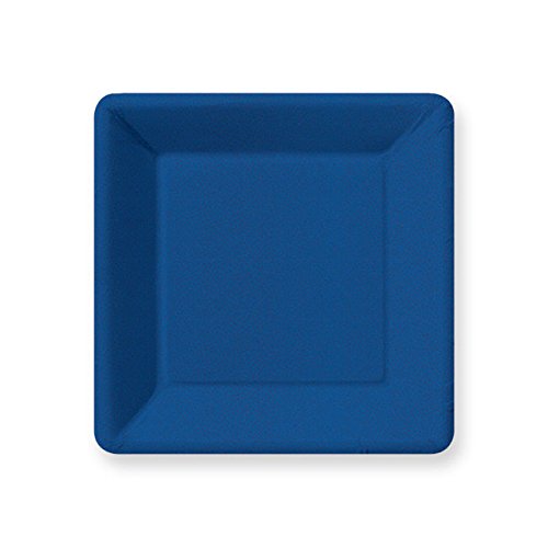 - Navy blue colored paper plates with a subtle pebble design