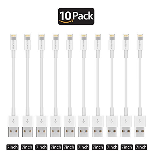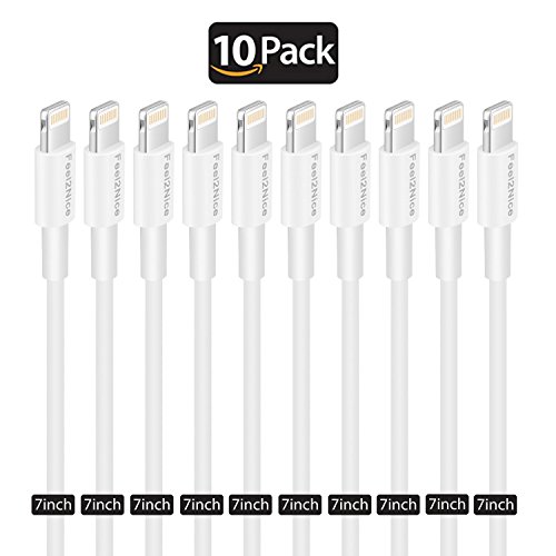 Short Lightning Cable 10 pack ,Feel2Nice 7-Inch Iphone Cord Data Sync USB Portable fast charge for Apple iPhone 7 plus,6/6s plus,SE/5c/5s/5,iPad Air/Mini/iPod touch/Multi-Port Charging Station,White