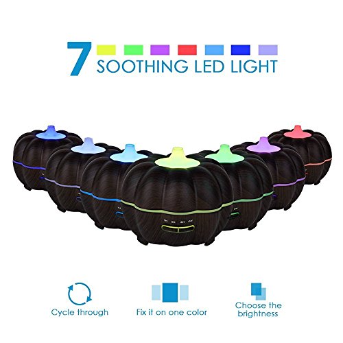 - 【Pumpkin Light Design】: Pumpkin Light with classic wood grain finish, this essential oil diffuser diffuser uses Ultrasonic wavesto instantly vaporise water and essential oil in the tank,to produce a cool,dry fragrant mist,and great gift for Hallowmas and Christmas.