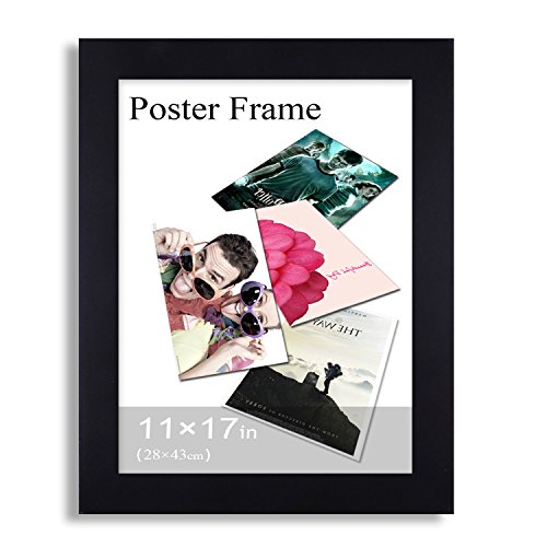 Adeco PF0379 Black Wood 1.25 inch Wide Margin Poster Picture Photo Frame, 11 x 17 Inches