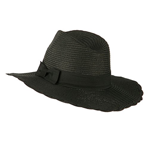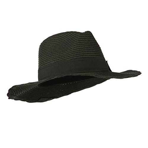 -. Binding : Apparel -. Brand : SS/Hat -. Department : womens -. Feature : Made of 100% paper straw. / One size fits most ladies, fitting up to XL. / Adult/Women. / Fitted with an inner sweat band. / Crown measures 3 1/2 inches deep. -. ProductGroup : Apparel -. ProductTypeName : HAT -. Title : Floppy Grosgrain Hatband Panama Fedora - Black