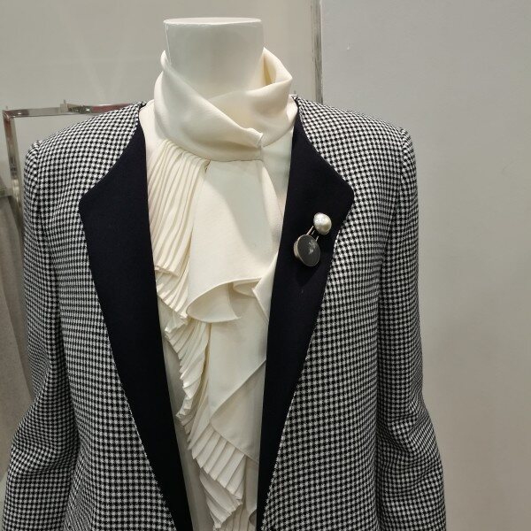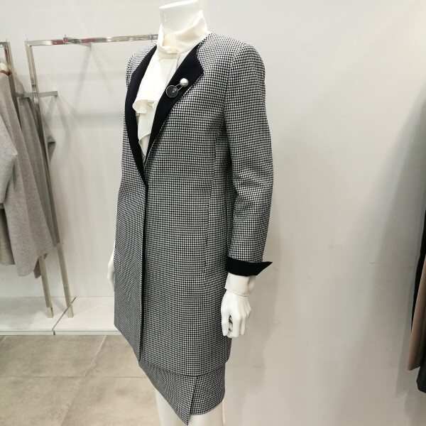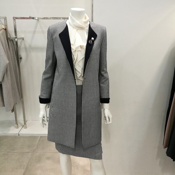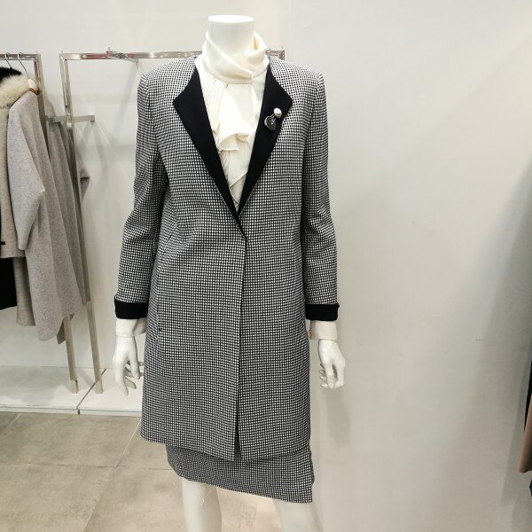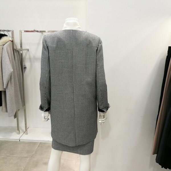 체크롱자켓이라 코디하기 좋으며스커트랑 셋트로 나왔기 때문에한벌로 입으면 고급스럽고 세련된스타일이다.