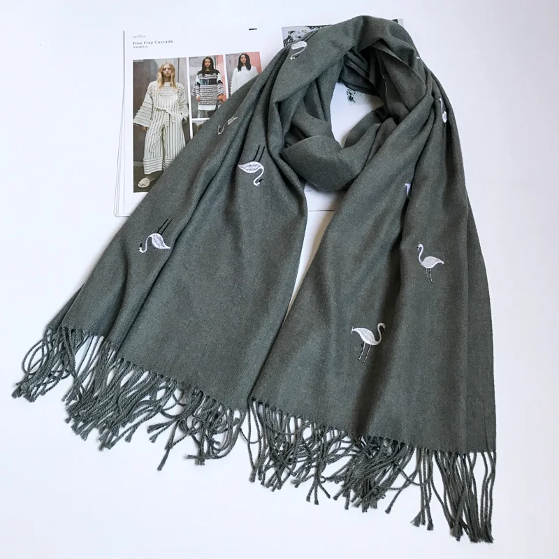 Season: Fall, Winter Size in cm: 180 x 70cm (±5cm) Size in inch: 72" x 28" (±2.5 inches) Feature: Flamingos Pattern Design Selling from: Miss COCOs Scarf