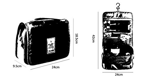 -. Feature : 9.6"W x 7.4"H x 3"D / Water-repellent interior to keep your toiletry kit clean and dry. Keep all your cosmetics, makeup, grooming, toiletries and accessories organized on your trip / Convenient hang hook for easy storage. Multi pockets design can be categorized to place different toiletries / High capacity. Includes top handle for easy handling / Water-proof and durable. Great for toting makeup, hair accessories, shaving tools, and other small items