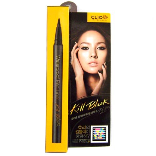 Winner of 2014 In Style Magazine Korea's Star Beauty Award, 2014 Solo Glam Best of Beauty, 2011 Marie Claire Korea's Beauty Editor's Pick, 2013 Allure Korea Magazine Best of Beauty, this is a Clio icon and classic that speaks for itself. Clio Professional is a legendary brand respected and loved by makeup artists, beauty editors and consumers alike for its iconic eyeliners and mascaras. The Kill Black and Kill Brown series have been steady bestsellers for years and is considered Korea's bestselling eyeliner of all time. Millions have been sold across Asia for its gorgeous shades of black and brown and amazing application. A new and improved formula with an airtight locked cap makes the Clio Waterproof Pen Liner unbeatable! Formulated with Carbon Black, the Kill Black Pen Liner comes in a spongy felt-tip applicator and allows for effortless dramatic winged lines or barely-there, precise lines that will last all day and night. Smudge-proof, waterproof, and easy to use and cleanse, it was designed for makeup pros and newbies alike. No flaking, no smudging-this is liquid eyeliner revolutionized.