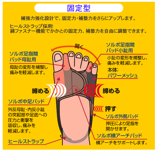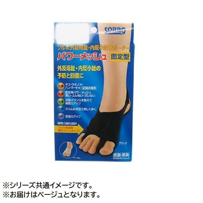 サイズ/S:21.5~23.0cm M:23.5~25.0cm L:25.5~27.0cm 素材・材質/本体:ナイロンポリウレタン パッド(ソルボ):ポリウレタン その他 製造国/日本 ※サプライヤー直送品 ご注文後2~3営業日後の出荷となります【商品名】ソルボパワーメッシュ 固定型 右 ブラック S