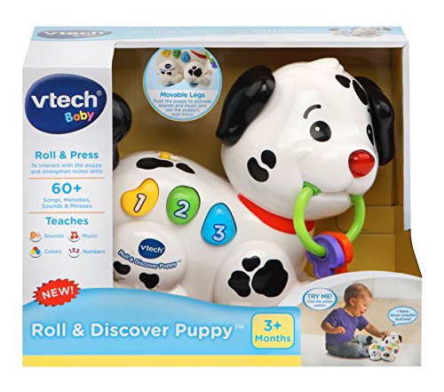 -. Feature : Build gross motor skills by pushing the playful, interactive puppy to activate music and puppy sounds and to see the puppy's legs move and his keys swing / Build fine motor skills by twisting the puppy's tail and ears for added fun / Three colorful buttons introduce colors, numbers, parts of the body, playful songs and phrases, and puppy sounds / The puppy's nose flashes along with all the sounds, and music plays when the puppy is rolled to attract your little one's attention