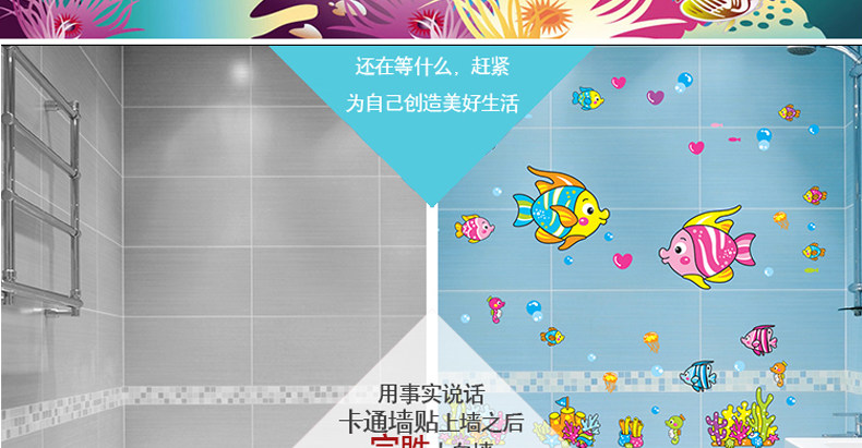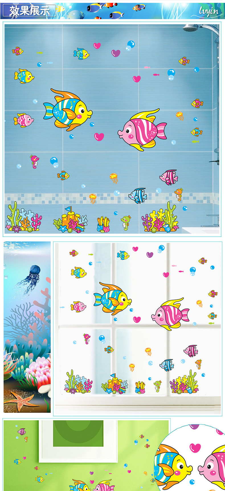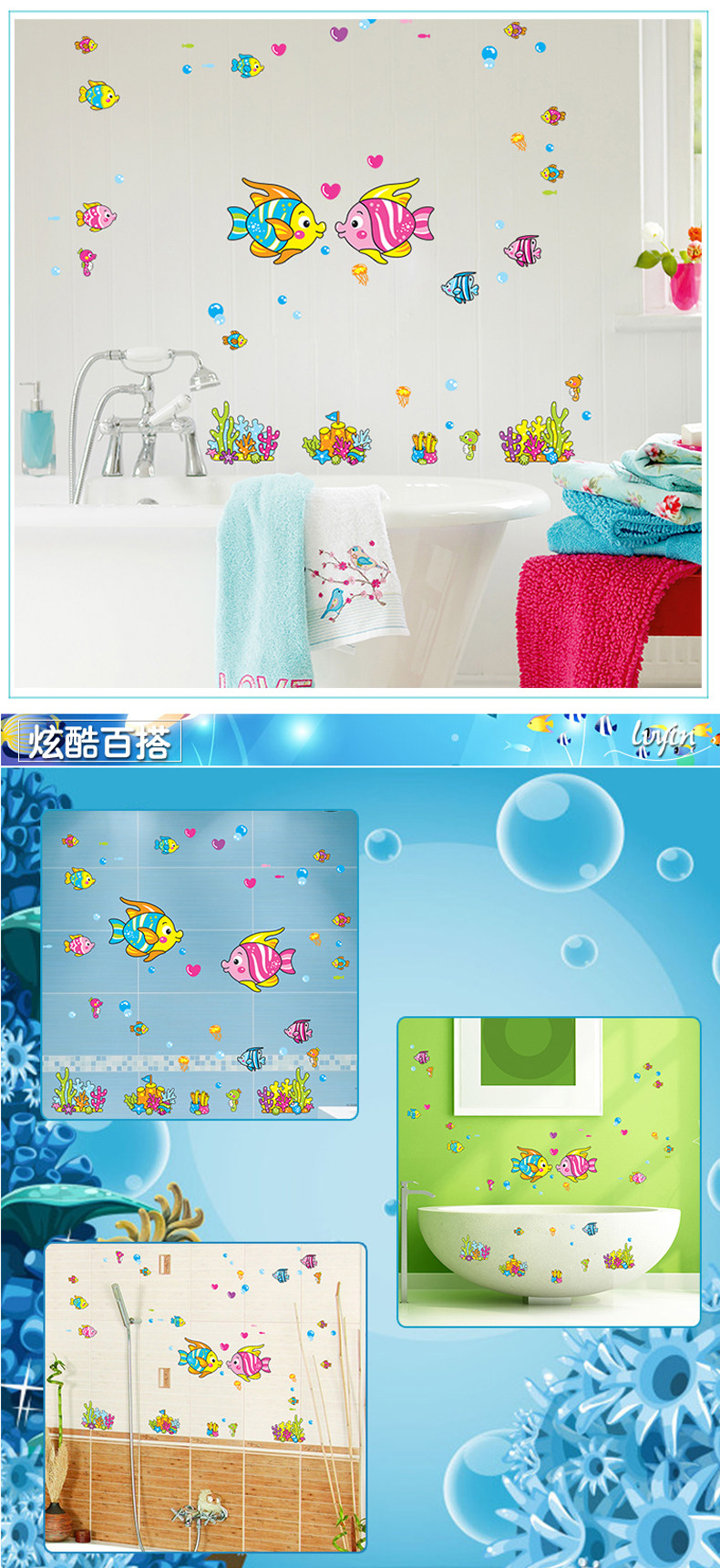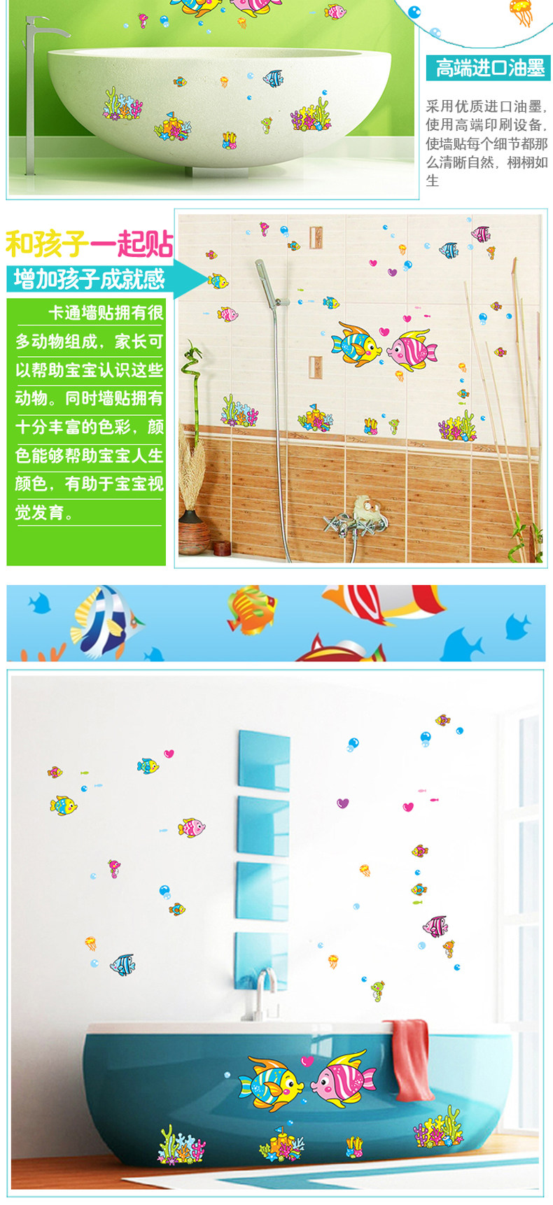 可爱卡通浴室卫生间防水小鱼墙贴幼儿园儿童房背景墙装饰墙纸贴画