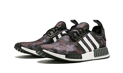 Binding : Apparel Product Description The more subtle of the two A Bathing Ape x adidas NMD_R1 releases, the "Black Camo" colorway features BAPE camo on the upper, which also features black accents. The white Boost midsole, featuring grey tabs, adds a nice touch. 0