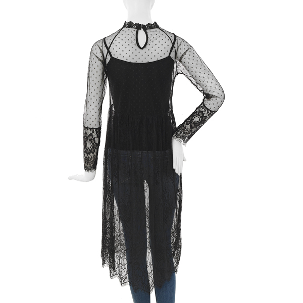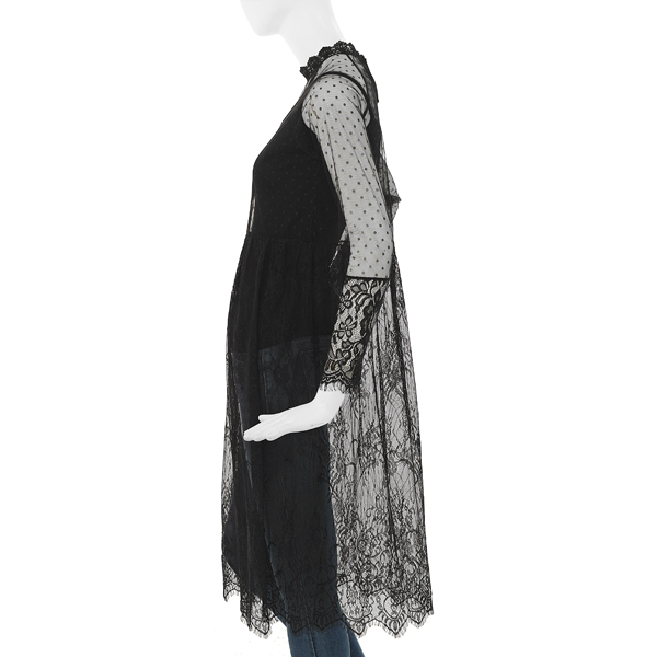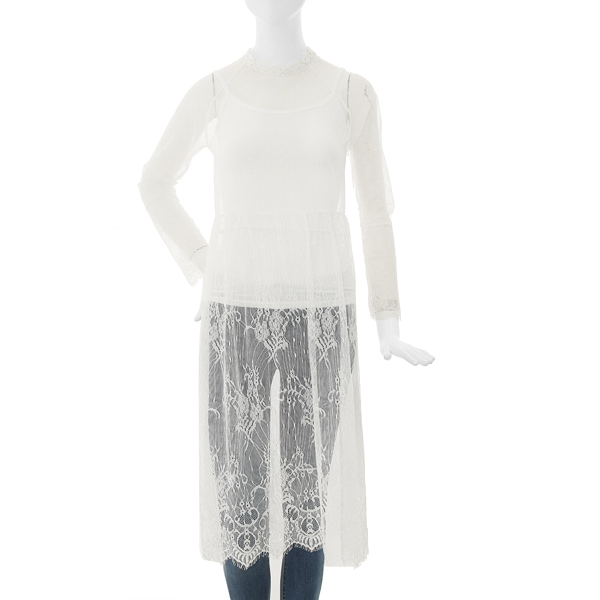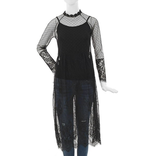 전체 레이스소재로 되어있어 여러가지 티셔츠,블라우스,맨투맨 등등 안에 입으실 수 있는 슬립원피스입니다.