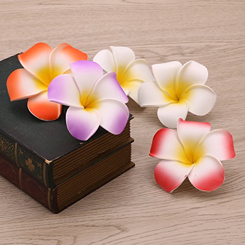 - Color: White andamp; Purple andamp; Green andamp; Rose Red andamp; Red andamp; Orange. - Hawaiian-style plumeria flower clips are good as accessories for luau parties, and these plumeria flower hair clips will help to attract people's attentions. - Flower hair clips are made of soft foams, so the petals of the flower clips will not be out of shape easily, thus you are able to wear them for many times. - You can attach them to your woven headbands, crochet headbands, clothes, dresses as decorations as well, these hair clips will help to attract others' attentions when having parties and so on.