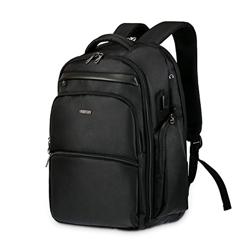 -. Feature : FOR LAPTOP - A built-in padded compartment designed to fit laptop up to 17", the back padded compartment makes the gravity point (mostly the heaviest part - the laptop) right against your back, then coordinate with ergonomically contoured shoulder straps to provide great comfort and maximum back support while traveling / DURABILITY - Made of high density 1500D ballistic nylon backed with thick waterproof material for long lasting red use. Patented dual zipper for main compartment for life long use. / COMFORT --- Multi-panel Airflow Design provides extra padding for comfort and maximum back support, a hidden pocket is designed at lower padding as a anti-thief pocket / LOTS OF POCKETS - main compartment designed with zippered pocket for passport or wallet and one smaller compartment to fit tablet; Front main pocket with organization panel for pens, name cards etc.; Quick access pocket with a detachable key fob; Side zippered pockets with elastic strap for water bottle, umbrellas etc. ;Headphone port included / ONE YEARS HASSLE FREE WARRANTY