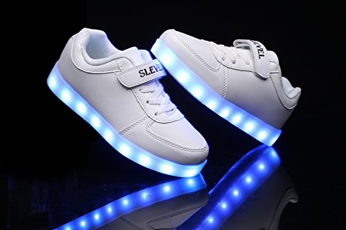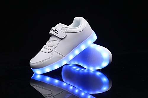 -. Feature : Color Description:7 kinds of static color,4 kinds of dynamic color changes,altogether 11 kinds of lighting patterns. / Wake up your light up shoes,hidden switch button beside the charging port,press it to switch on,with each press,it changes to another light mode,so easy. / With the attached USB charging cable you can connect USB cable from the computer,you can also use mobile phones and other chargers,mobile power can also be used,safe and reliable. / If received the shoe and found the shoes light is not lit, please charge your shoes battery,when charging,slowly pull the plug and note the front and back of the connector. / Because the brand difference,please refer to chart determine shoe size,please allow little color difference due to different camera or light environment.