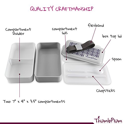 ThumbPlum Bento Lunch Box, Perfect for Nutritious Back to School Meals. Kids Love Them! Great for Adults Too. Money Saving, BPA free, Microwave Safe. Picky Eater Approved Guaranteed!