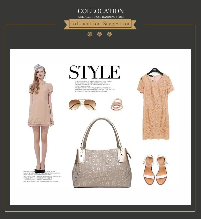GSQ Hot Luxury Leather Women Bag Promotion Famous Brand Designer Zipper Style Champagne Lady Handbag High Quality Leather Tote