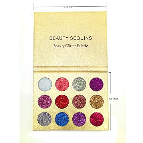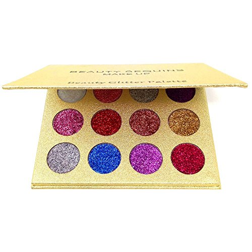 BEAUTY SEQUINS Eyeshadow Palette Insanely Pigments Glitter Make Up Palettes Long Lasting Waterproof 12 Shades(12 colors Glitter Palette)