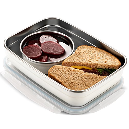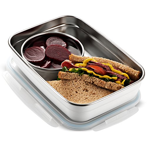 Komax Stenkips Stainless Steel Food Storage Lunch box and dressing Kit (set of 2 ) Large 57.5oz. - Airtight, Leakproof With Locking Lids - BPA Free contaiers - Freezer and Dishwasher Safe