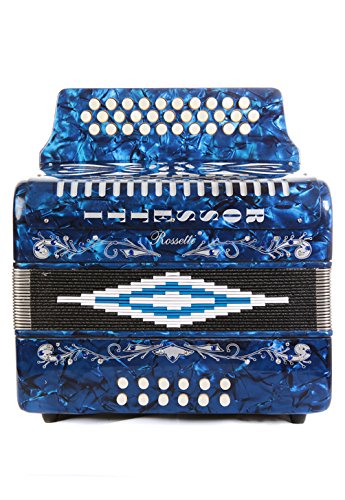 Studio : Rossetti Publisher : Rossetti Product Description This Button accordion features Italian Style decorations and pearlescent colors. The bellows are 20 fold in size for bigger sound and have sheepskin corners for longer life. There are single straps hooks on each side of the accordion with plenty of room for the two extra long leather padded shoulder straps. The accordion also includes an adjustable left hand strap. We use an upgraded button mechanism designed to keep buttons moving freely with no sticking. Pearl buttons and a custom grill design offer a beautiful touch. The acoustically designed grill cloth provides a bigger sound than most other comparable accordions. A slide lever air valve makes for faster air intake. The accordion comes in a premium padded case with lock and logo. 0