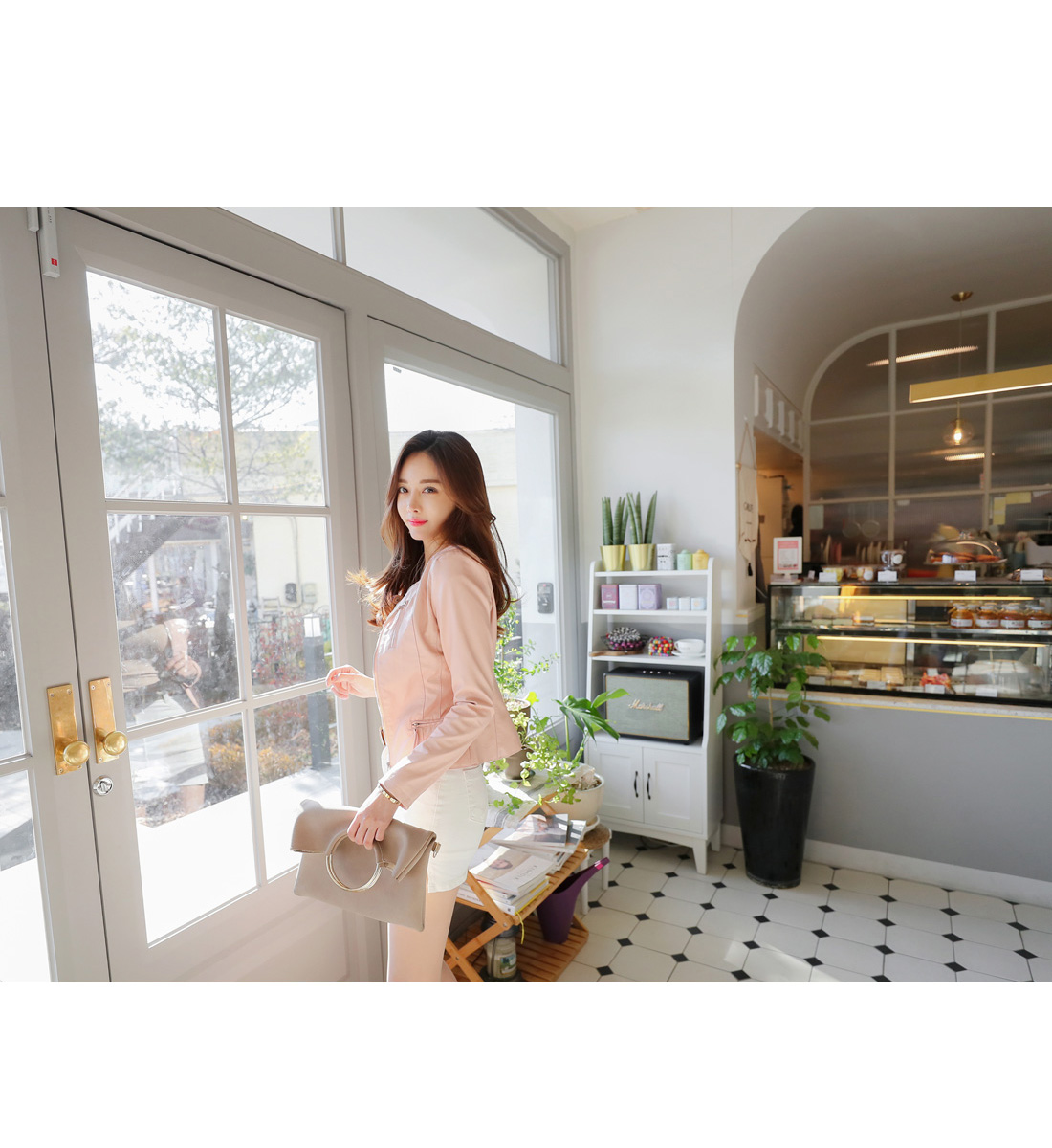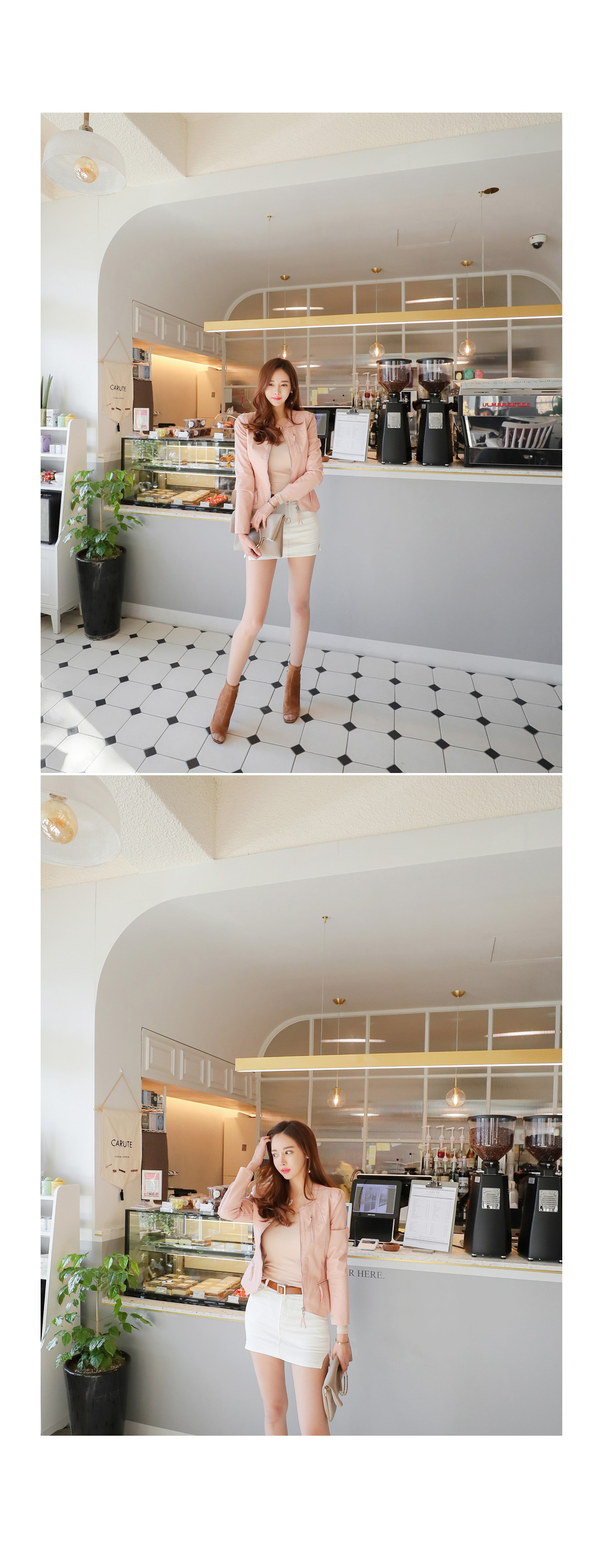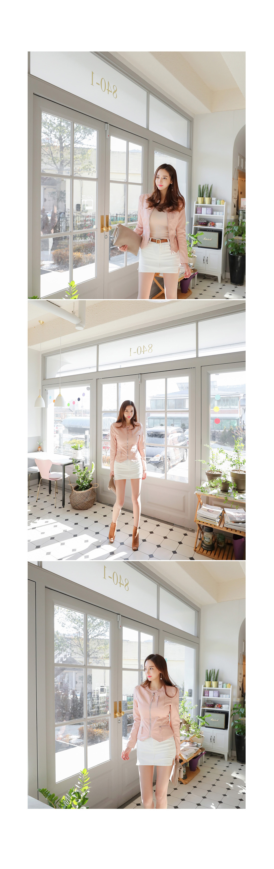 슬림하게 라인을 잡아주며 숏하게 떨어지는 기장으로