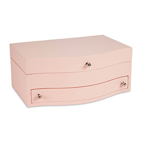 PRACTICAL STORAGE SOLUTION - This handcrafted wooden jewelry case is ideal for storing and organizing bracelets, rings, neckalces, and much more. Larger keepsakes can be safely stored and accessed with the lower pullout drawer. Top section carefully compartmentalized to maximize space.