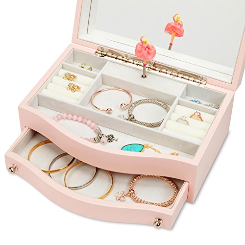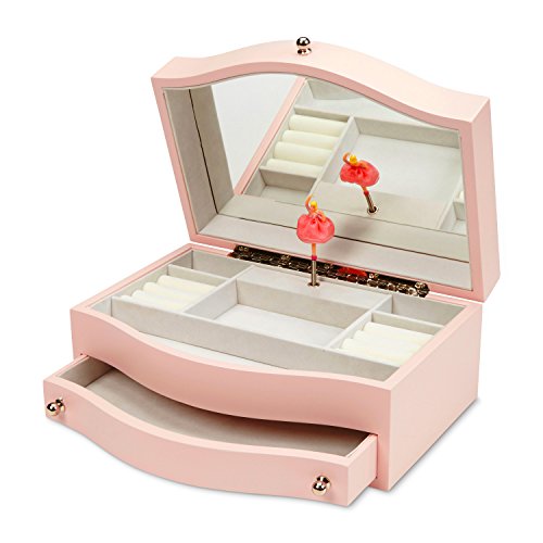 STUNNING DESIGN - Charming girls musical jewelry box carefully designed with hourglass curvature and elegant silver hardware finish. The perfect gift for your princess of any age.